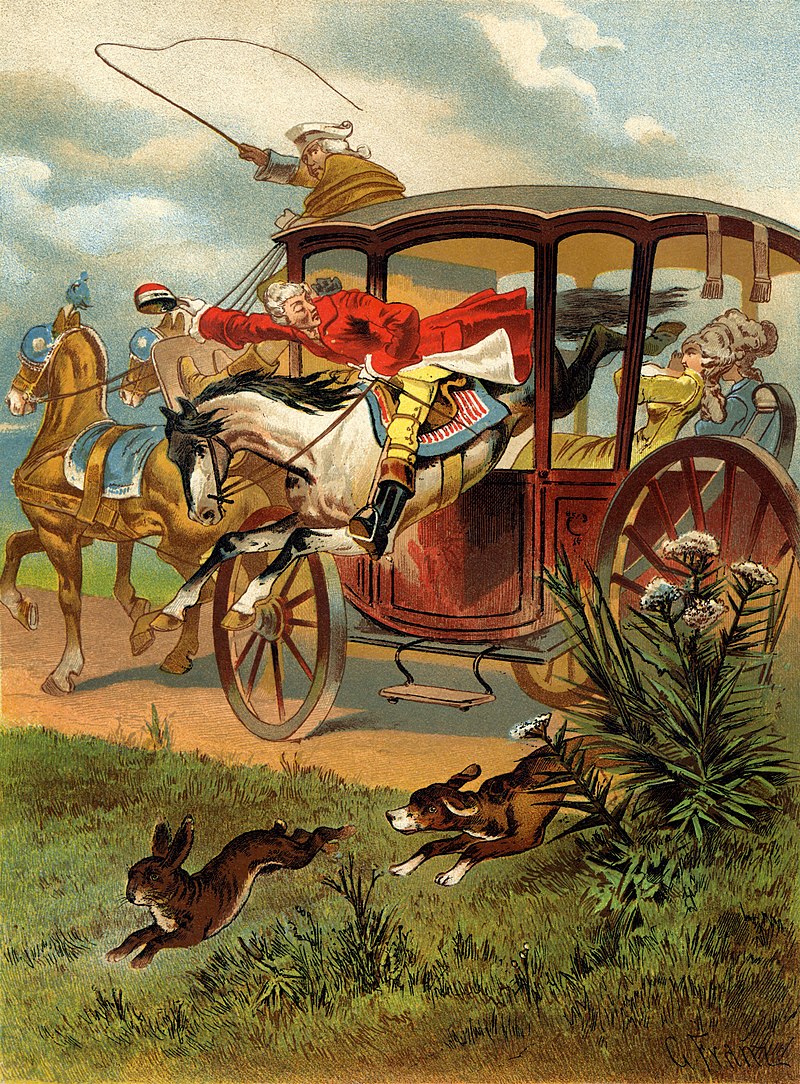 Bestand:Gottfried Franz - Munchhausen jumping through the carriage.jpg