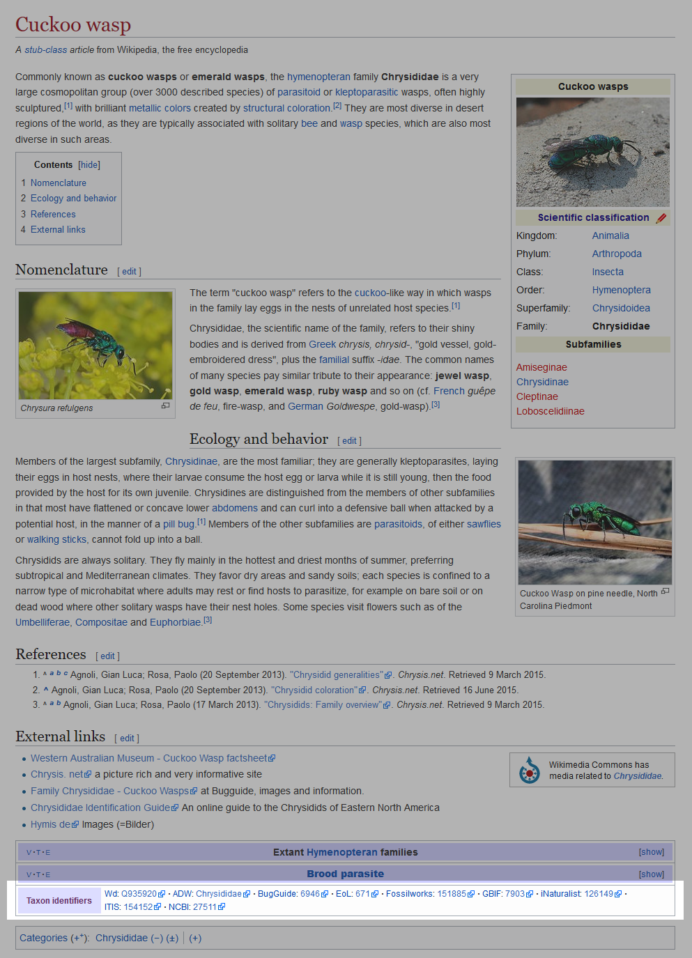 Bestand:Taxonbar layout placement on English Wikipedia - Cuckoo wasp.png