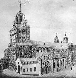 Sint-Servaaskerk in Maastricht met op de hoek het graanspijker