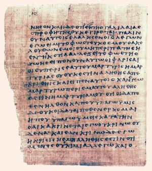 Papyrus 75 (ca. 175–225) bevat zeer oude en goed bewaarde bewijsstukken, zoals hier Johannes 1:1-15.