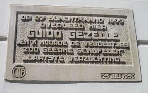 Gedenksteen voor Guido Gezelle aan het poortgebouw van het Engels Klooster, Carmersstraat 85 in Brugge.