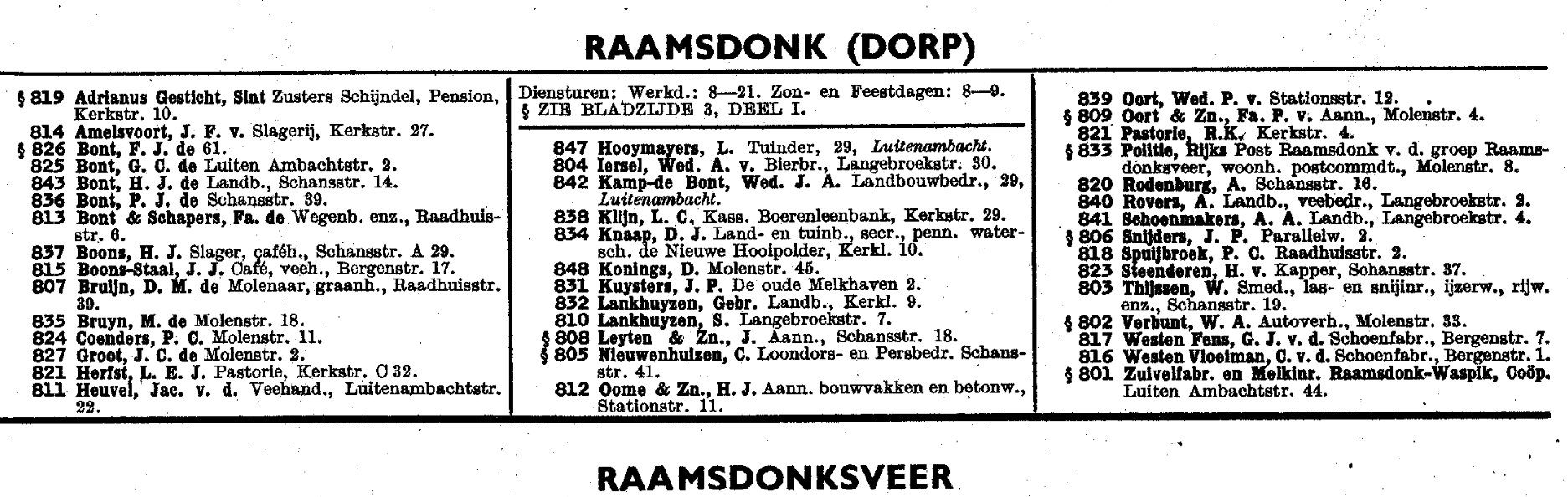 Lijst met telefoonnummers te Raamsdonk in 1950