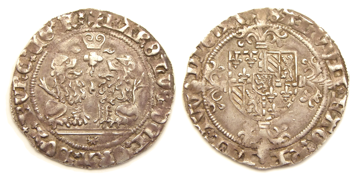 Bestand:Karel de Stoute dubbel vuurijzer Brugge 1475.jpg