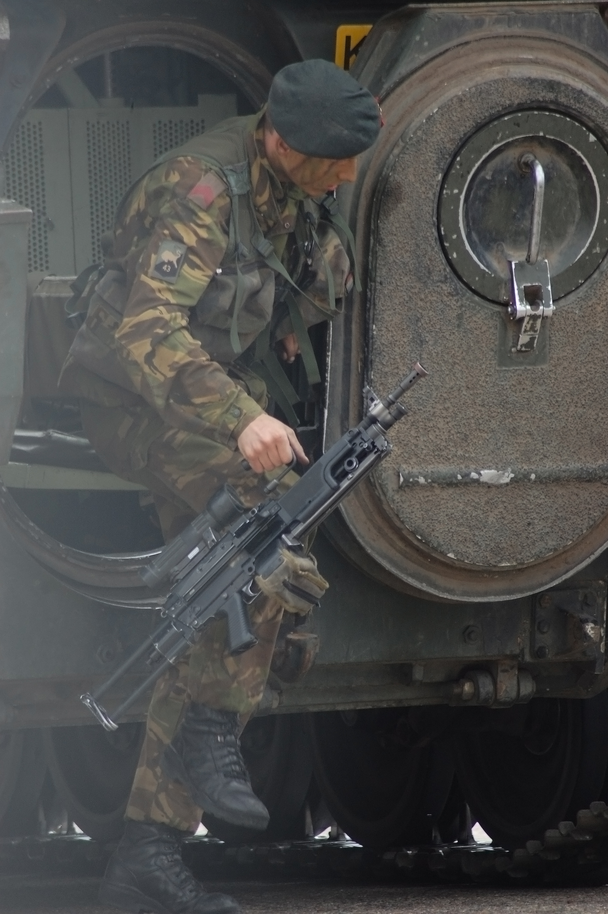 Bestand:Soldier getting out of Army truck.jpg