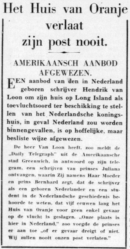 Het bewuste bericht in De Telegraaf van 8 mei 1940 (Delpher)