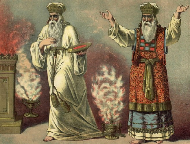 De Hogepriester werd tot zijn ambt gewijd door een plechtige wassing, de bekleding met het ambtsgewaad, de zalving met heilig olie, en het offeren van een var (jonge stier) en twee rammen.