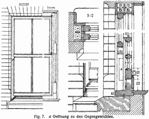 In het kozijn bevinden zich vaak aan weerskanten holle ruimten, kokergaten genoemd, waarin contragewichten op en neer schuiven. De houten delen die de holten aan de binnenzijde afdekken heten belegstukken, de schroeven waarmee ze bevestigd worden, belegschroeven.
